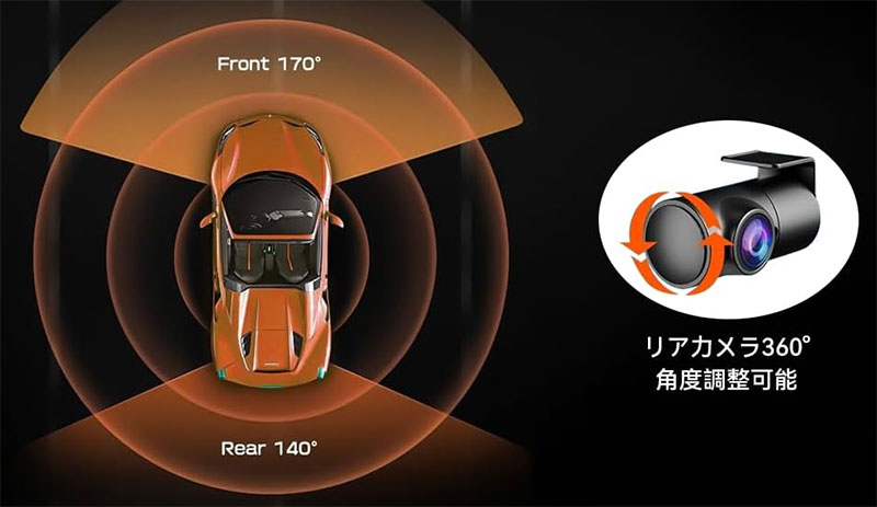 フロント4K+リア1080Pの前後カメラ構成で、WiFiとスマホ連携に対応したモデルです。